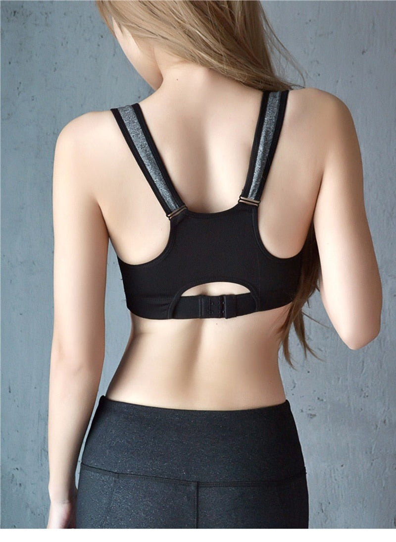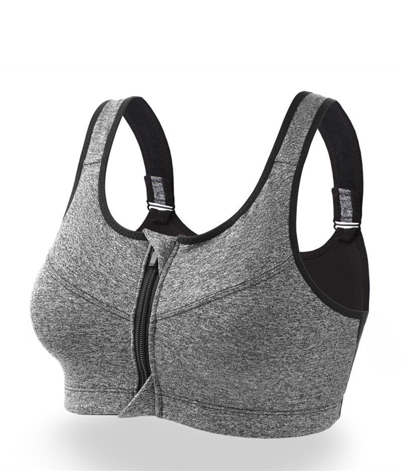 Sutiã esportivo frontal com zíper sem fio à prova de choque cobertura completa para Yoga / Academia